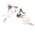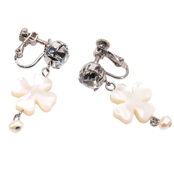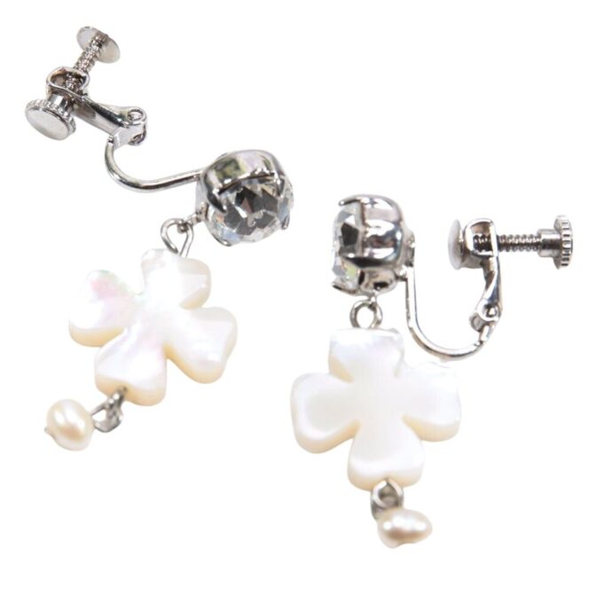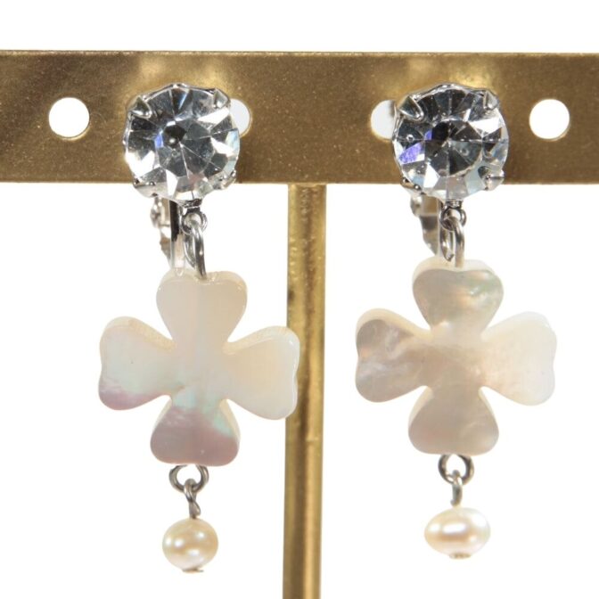 フラワーモチーフが美しい白蝶貝のイヤリング。