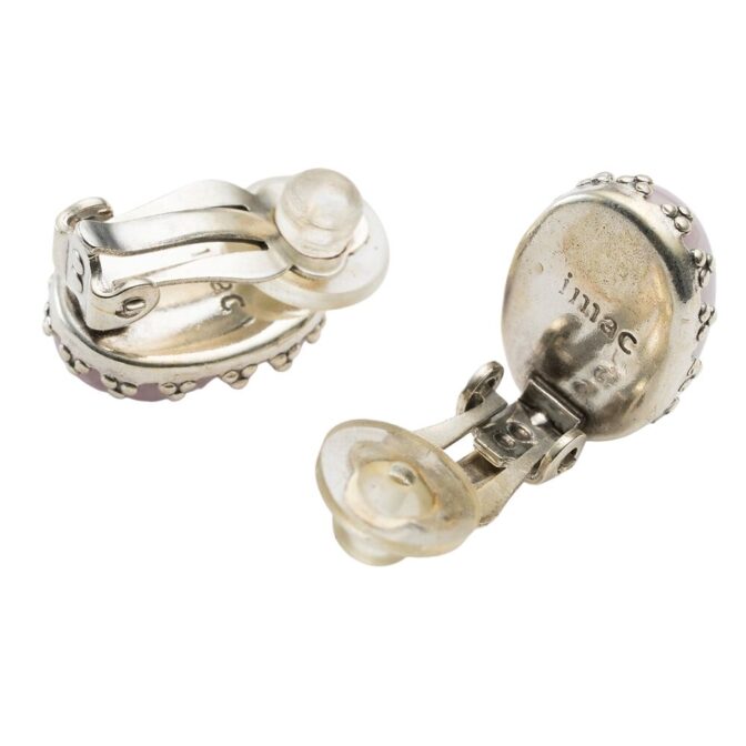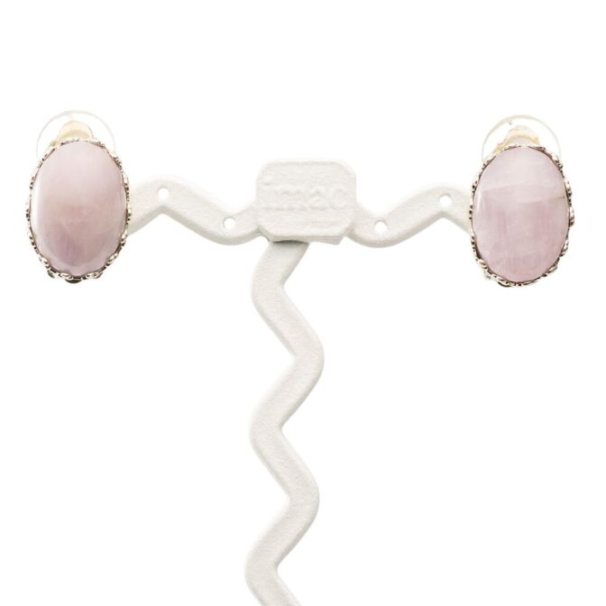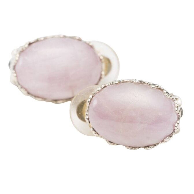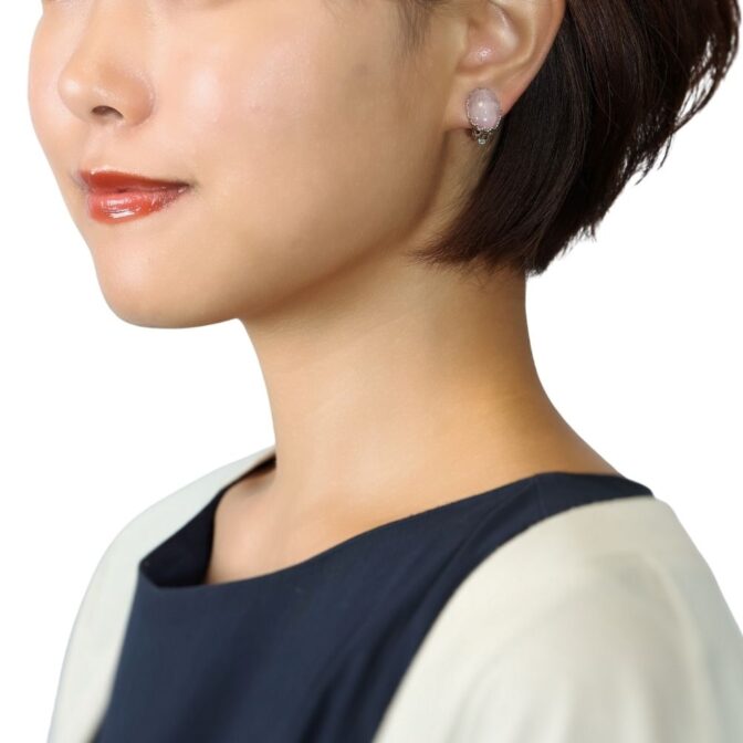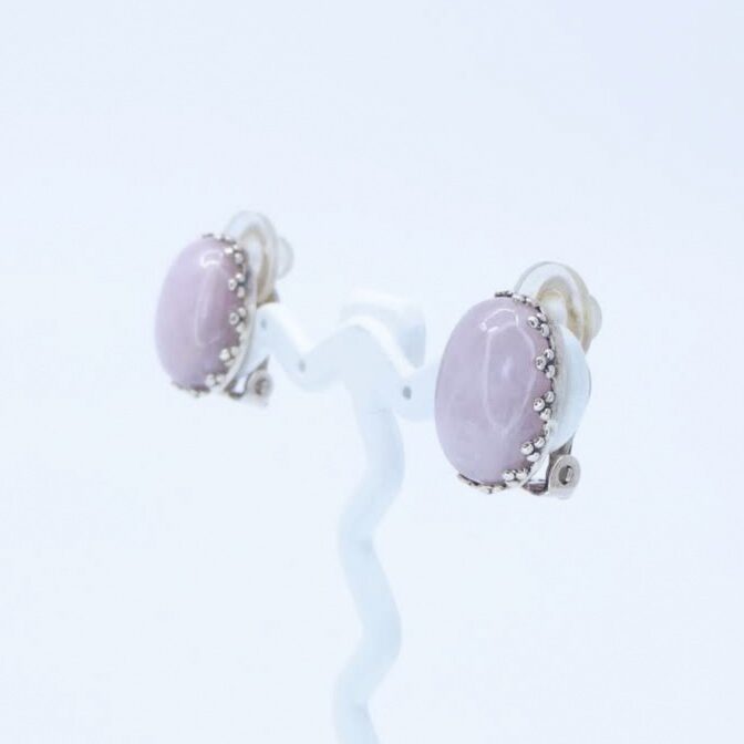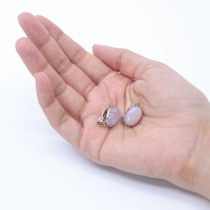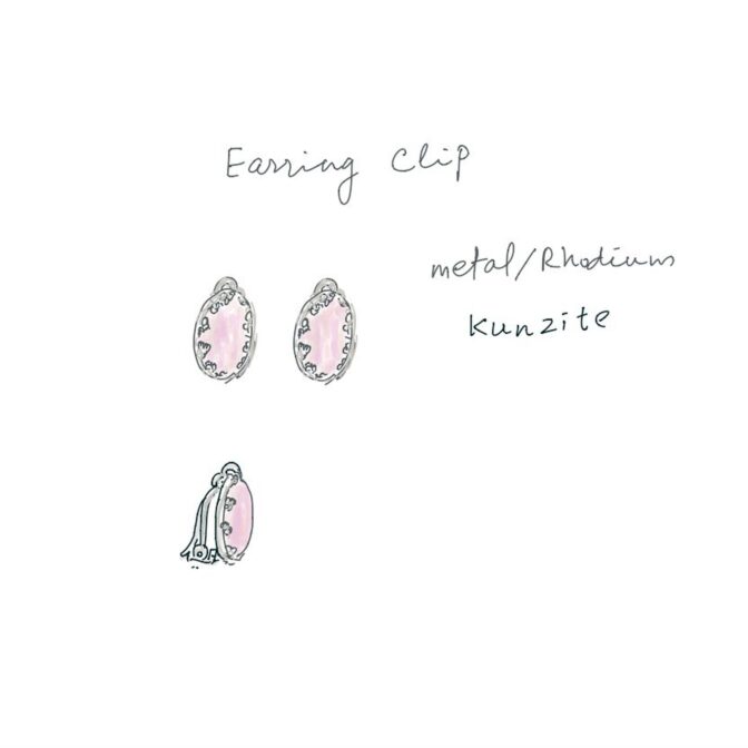 紫がかったピンク色が美しいクンツァイトのイヤリング。