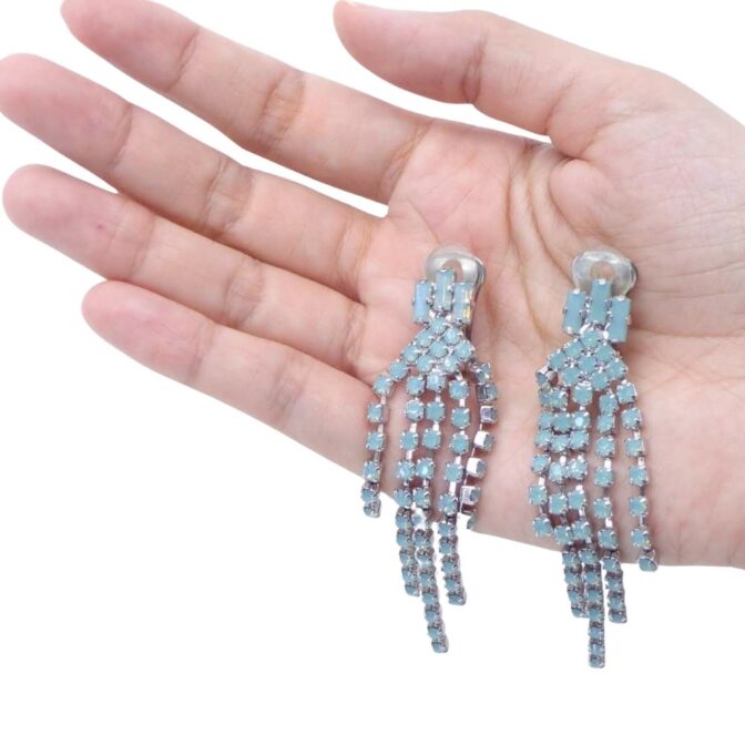 パステルグリーンのロングイヤリング。
