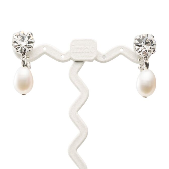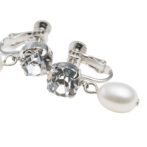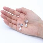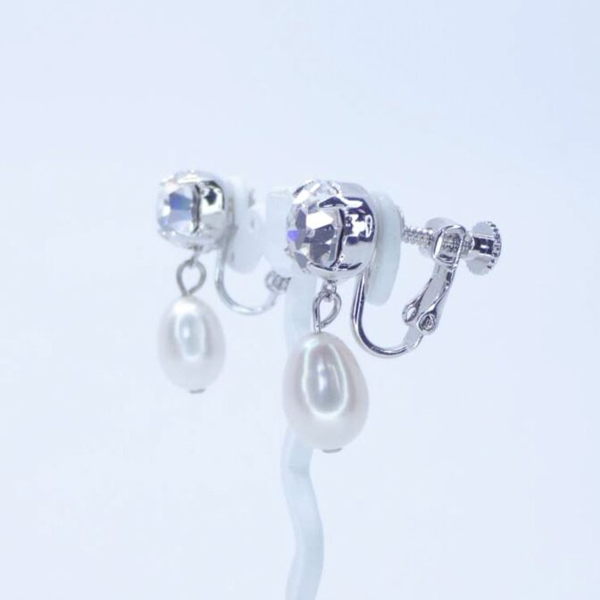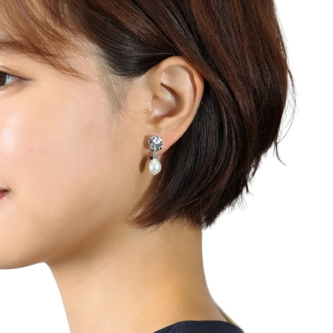 優しい光沢の淡水パールとスワロフスキークリスタルの組み合わせが上品なイヤリング。