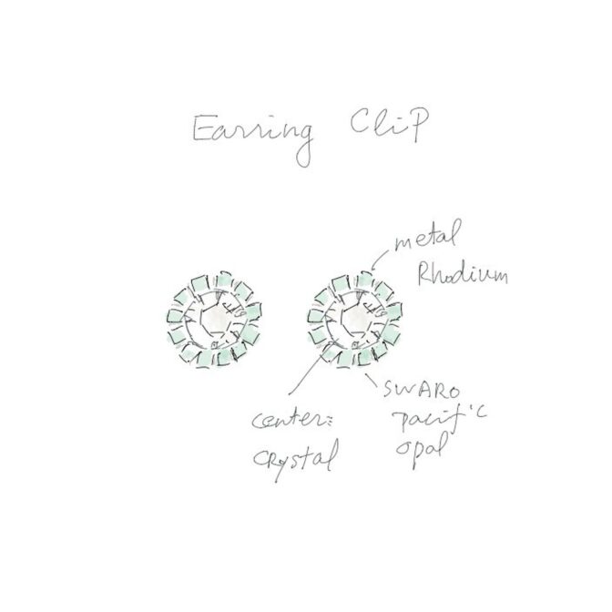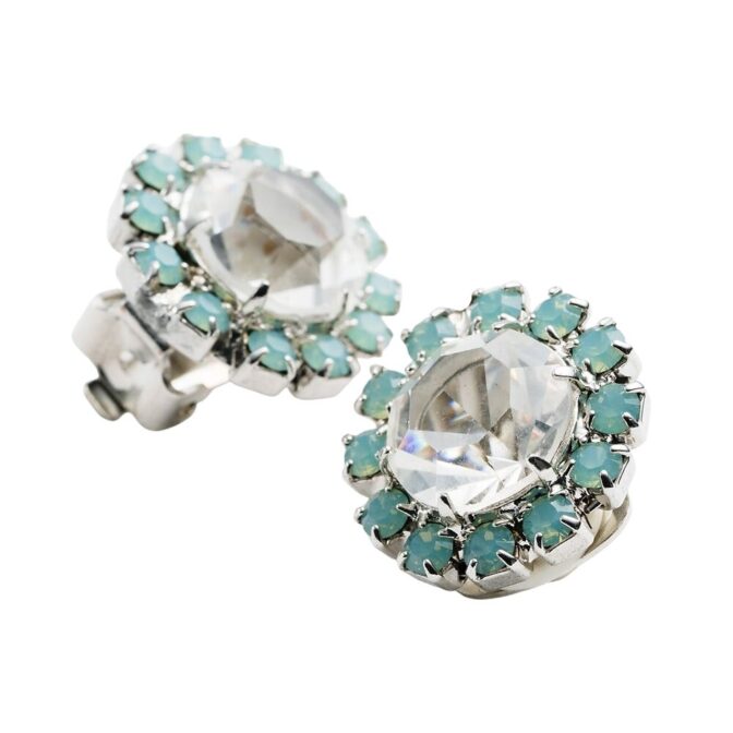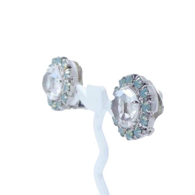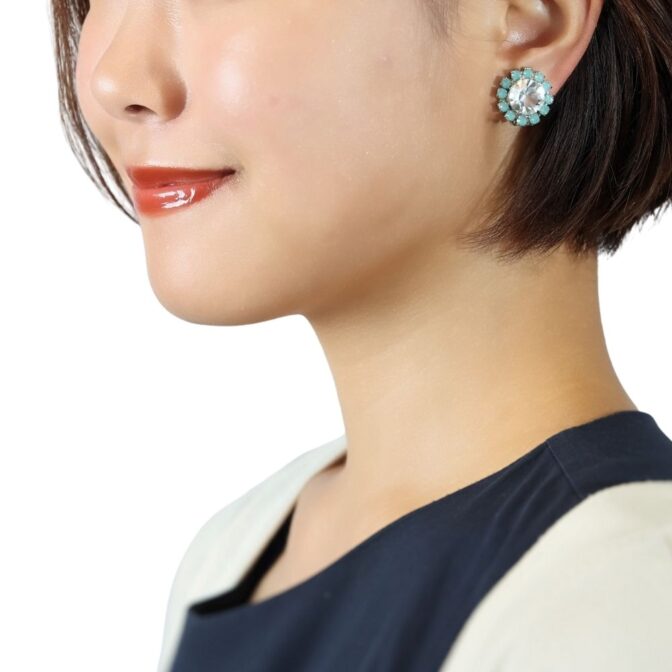 大粒のクリアカラーのスワロフスキークリスタルを、小粒のパステルグリーンのスワロフスキークリスタルが囲む上品なカラーです。