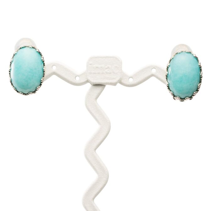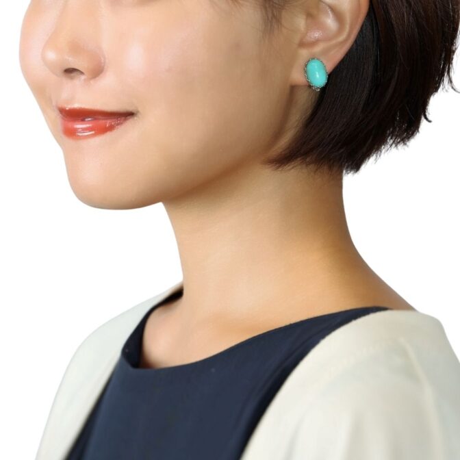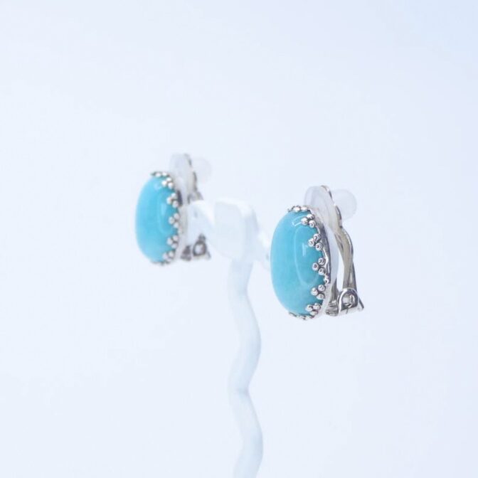 鮮やかなライトブルーが美しいアマゾナイトのイヤリング。