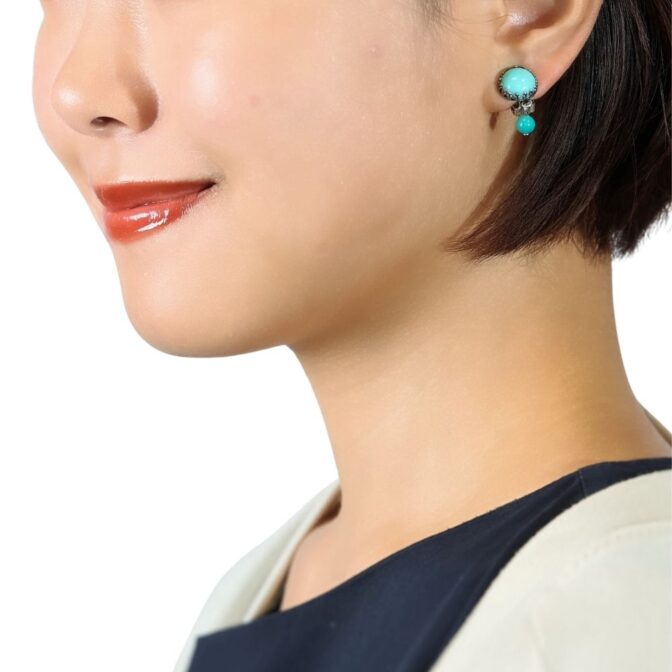 鮮やかなライトブルーが美しいターコイズのイヤリング。