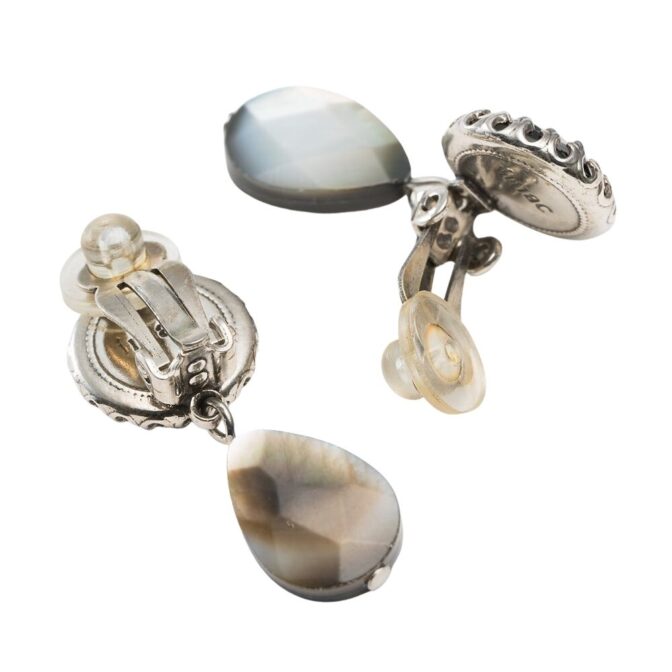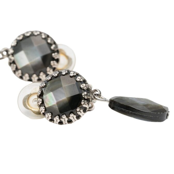 ダイヤ柄のカッティングが美しい黒蝶貝のイヤリング。