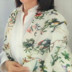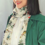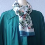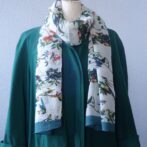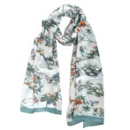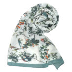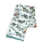 植物と小鳥モチーフがプリントされたロングスカーフ。