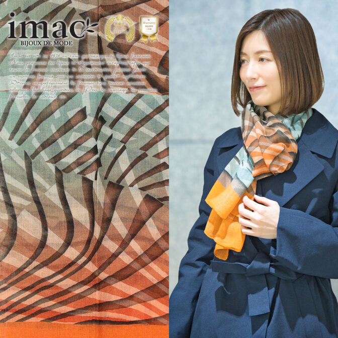 その経験とノウハウを活かし、カラーや柄の美しさ、楽しさ、豊かさを追求しているのがイマックのスカーフの特長です。