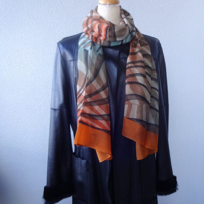 今の時代の新しさと普遍的な美の融合を目指したデザインのスカーフです。