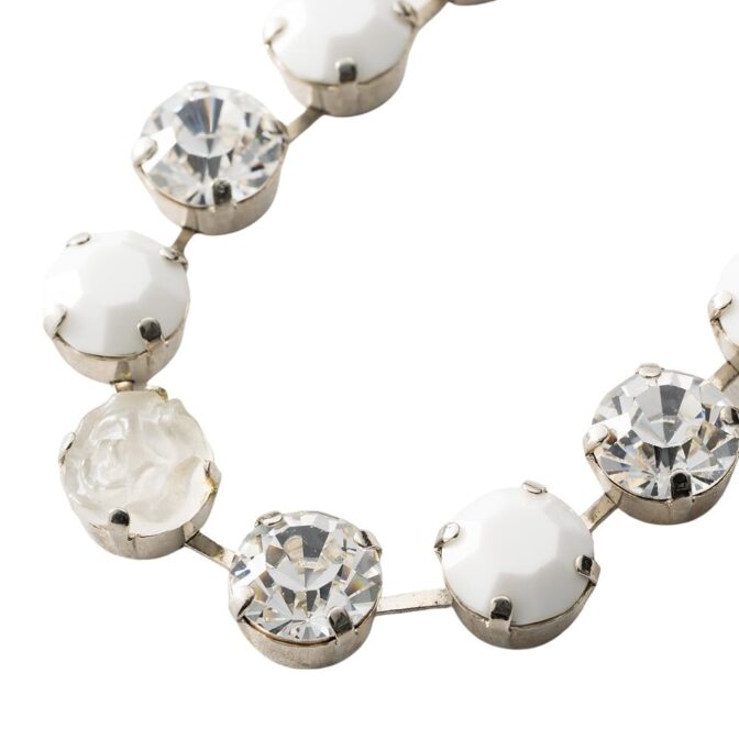 大粒のクリアカラーとホワイトのスワロフスキークリスタル、そして薔薇模様の高級ハンドメイドグラスを贅沢にあしらいました。