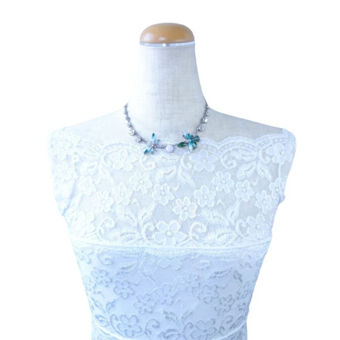 ネックレス ラインストーン とんぼ ブルー グリーン 132393