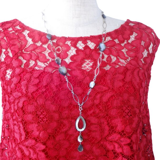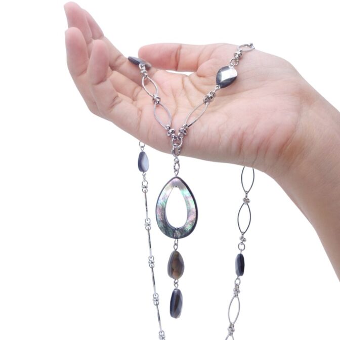 ネックレス 黒蝶貝 グレー Y字 2WAY 141855