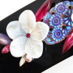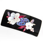 白蝶貝、上質なボヘミアングラス、スワロフスキークリスタル、淡水パールを贅沢にあしらった、ラグジュアリーなデザインのバレッタ。上品で美しいフラワーモチーフが立体的にデザインされており、華やかで高級感あふれる印象を与えます。ベテラン職人が手作業で仕上げたオリジナルデザインは、どんな場面でも華やかさをプラスしてくれます。特別な日やパーティーなどのオケージョンはもちろん、普段使いでも、ヘアアレンジに上品な印象を与え、若々しく美しく見せてくれます。ぜひこのラグジュアリーなバレッタで、特別な日を彩ってください。