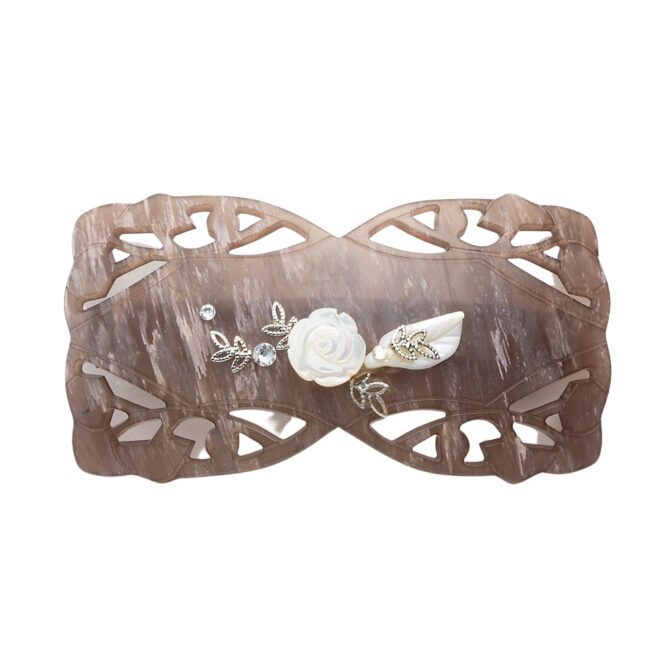バレッタ 白蝶貝 ラインストーン グレー ホワイト 薔薇 151077