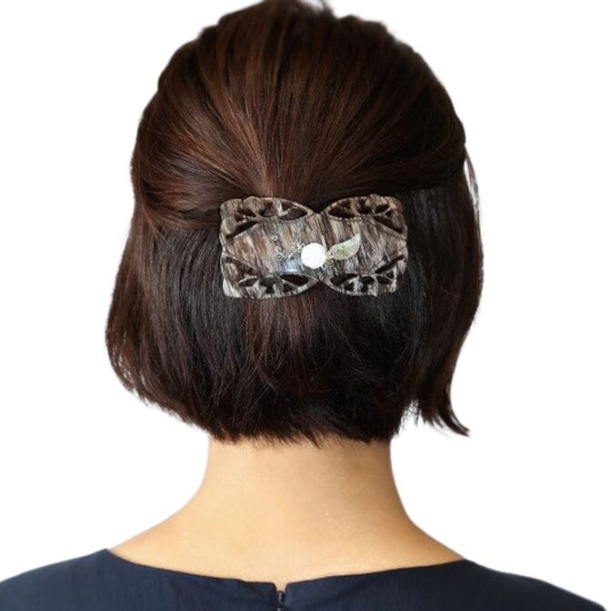 白蝶貝の優しい光沢がエレガントなヘアバレッタ。
