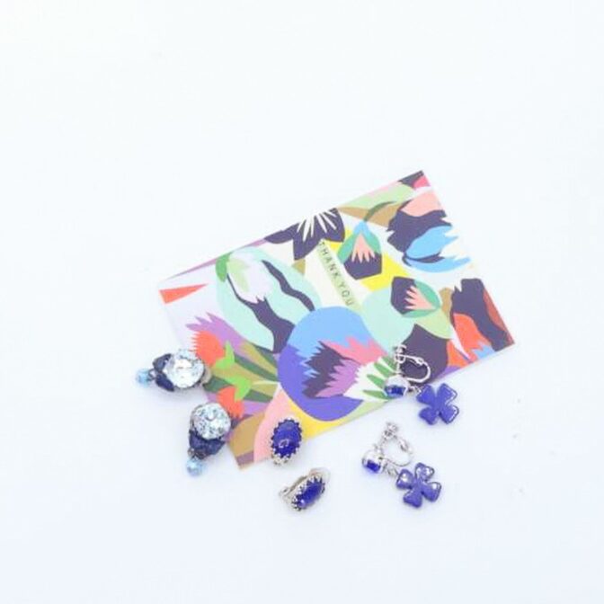 パステルブルーやダークネイビー、オーロラブルーなど様々なトーンのブルーを組み合わせ、上品な印象です。