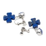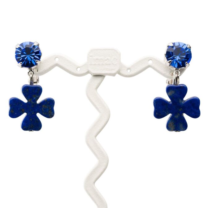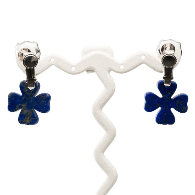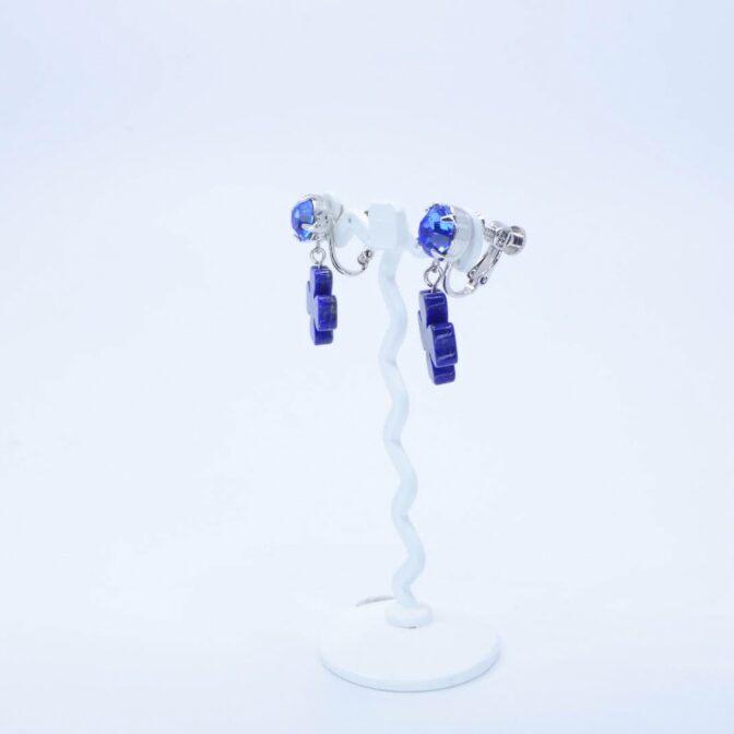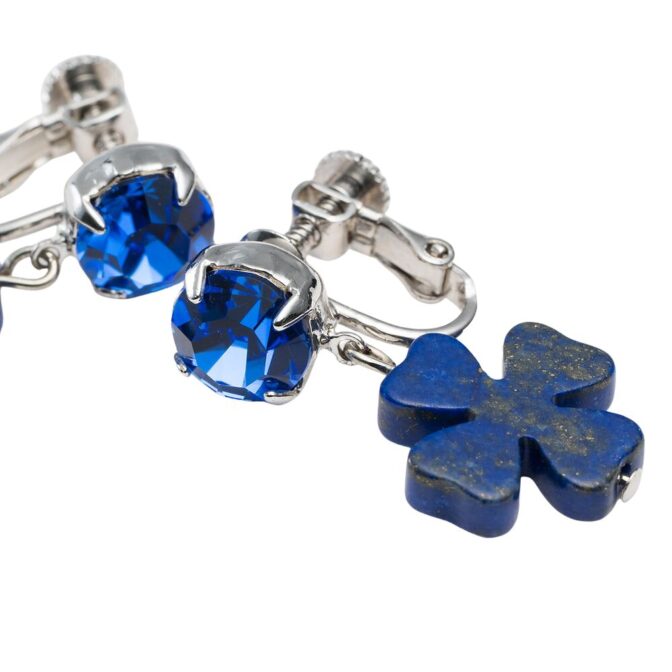 フラワーモチーフにカットされたラピスラズリが動きに合わせて揺れ、注目を集めます。