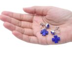 ブルーのスワロフスキークリスタルが煌めき、上品な印象です。