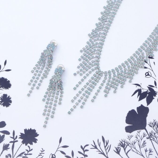 パーティーやデイリーのおめかしなどにふさわしいネックレス&イヤリングです。