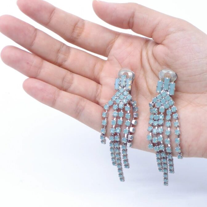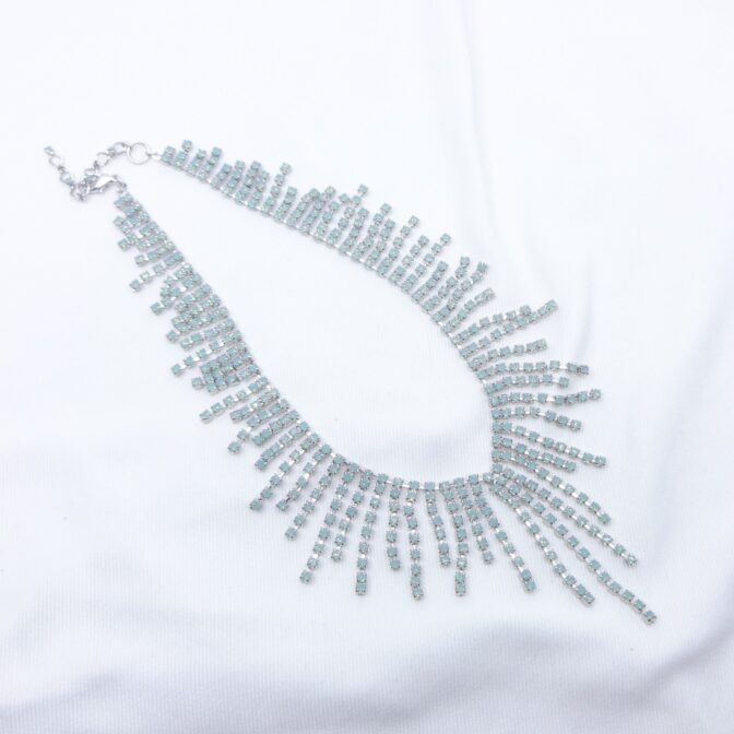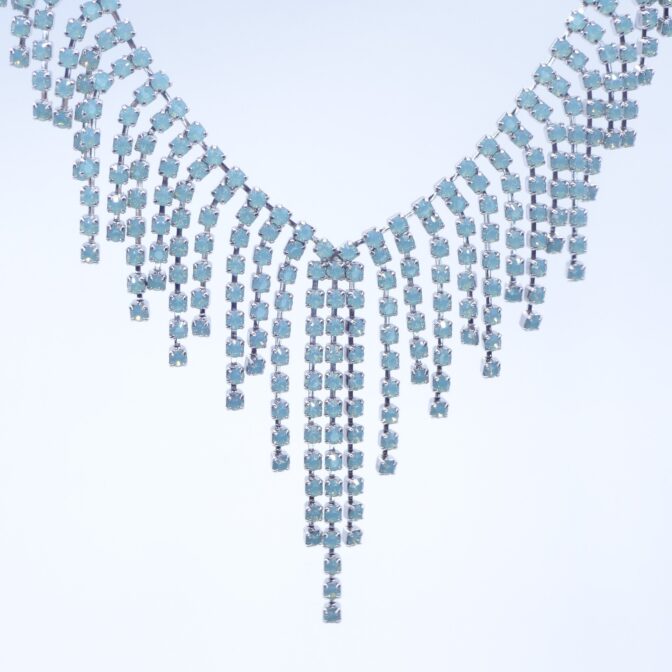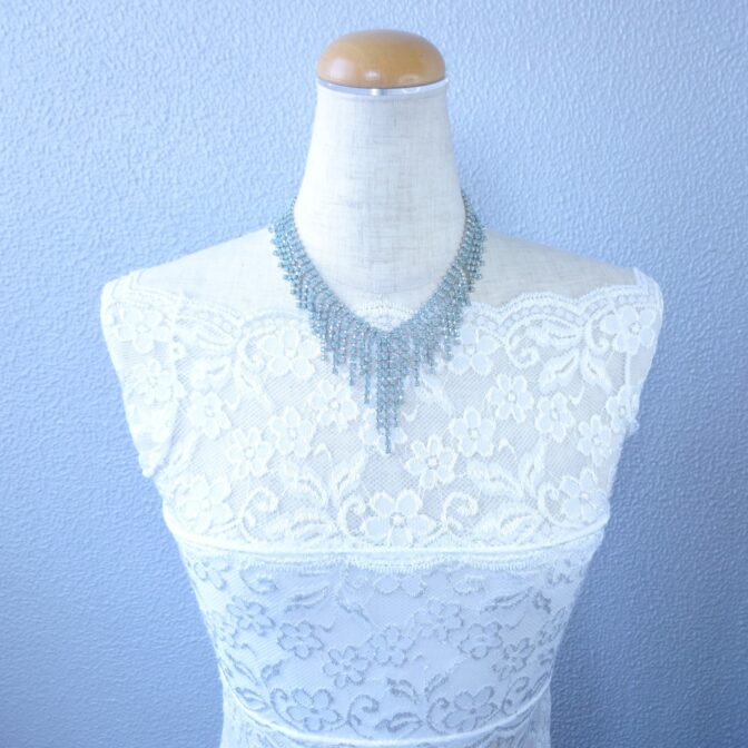 ペパーミントグリーンが美しいビジューネックレスとイヤリングのセット。