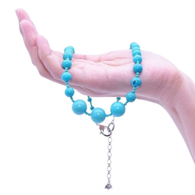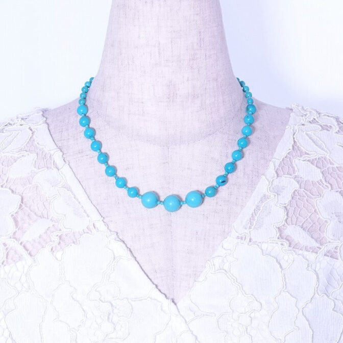 鮮やかなライトブルーが美しいターコイズのネックレス。