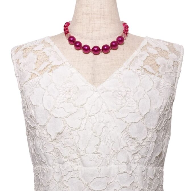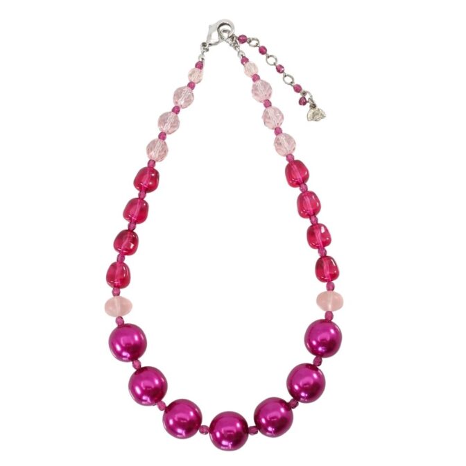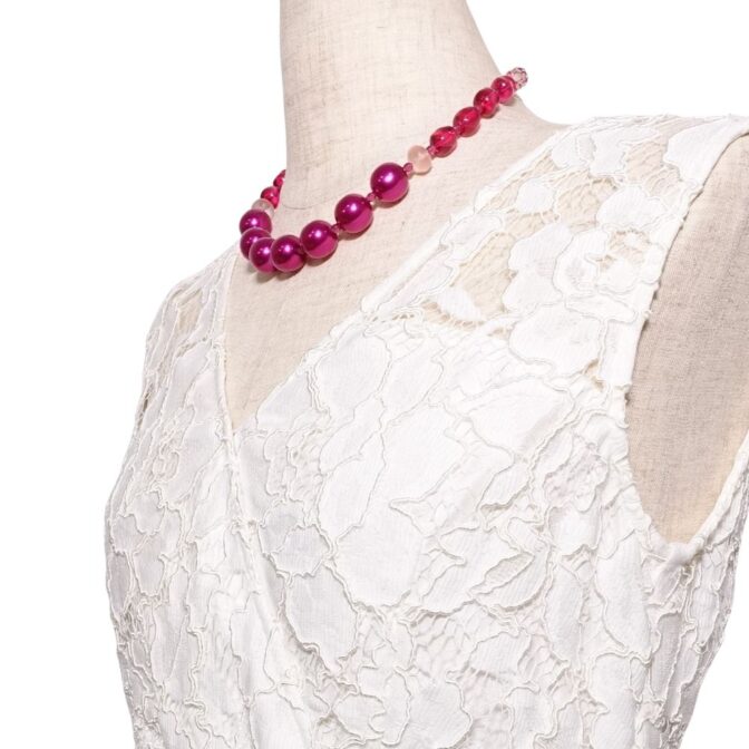 フューシャピンクのボヘミアングラスが美しいネックレス。