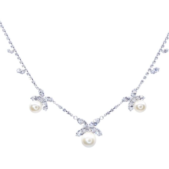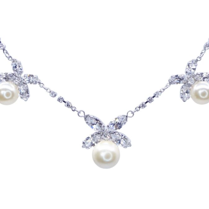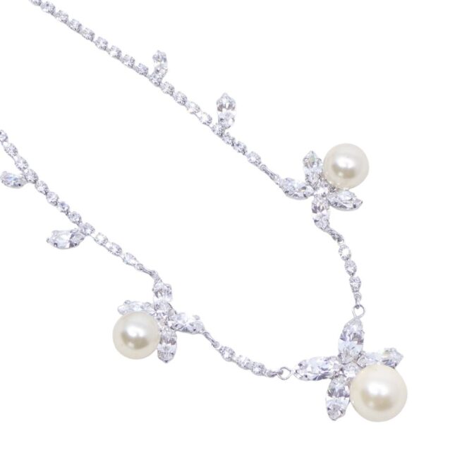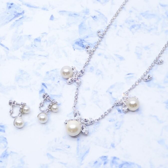 クリアカラーのスワロフスキークリスタルと大粒パールの組み合わせがエレガントな印象です。