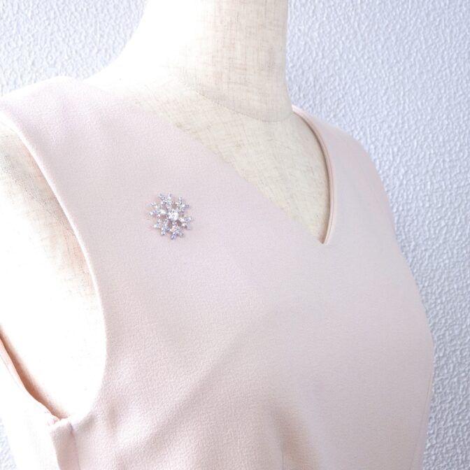 まるで手の平に舞い降りたひとひらの雪がそのまま凍ってビジューになったような印象です。