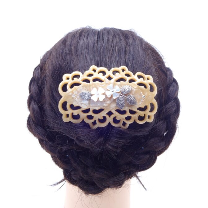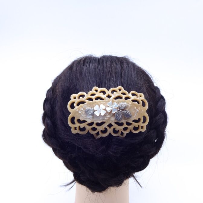 バレッタの曲線模様が美しく、女性らしい印象です。