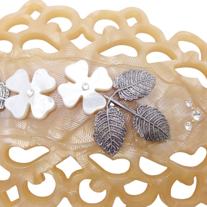 白蝶貝の優しい光沢がエレガントなヘアバレッタ。