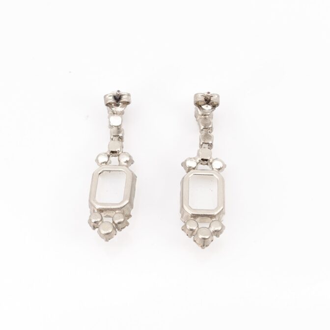 スクエア型のボヘミアングラスとラインストーンを組み合わせたピアス。