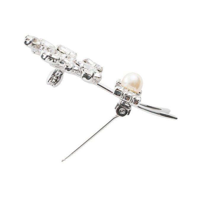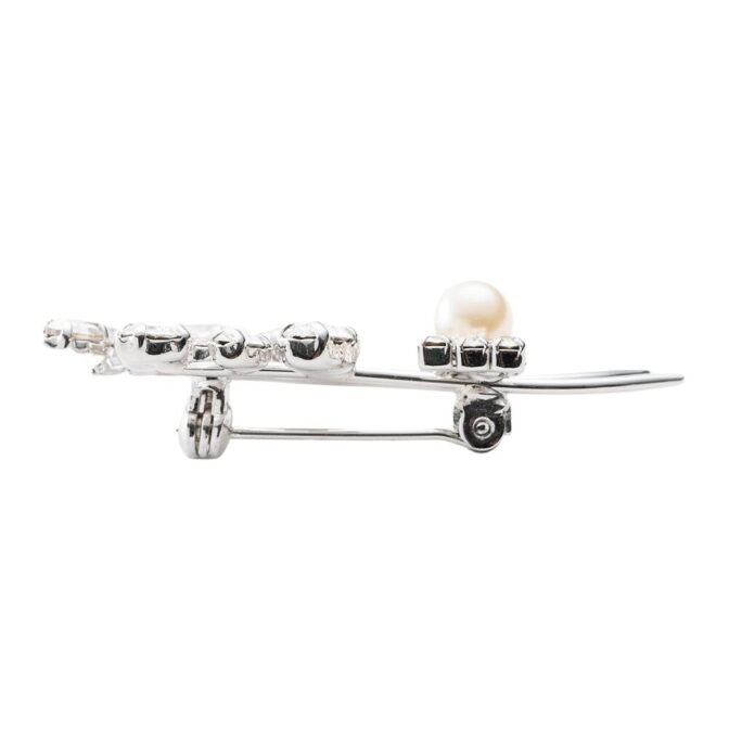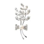 ブローチ ラインストーン パール クリアカラー ボタニカル リボン 143171