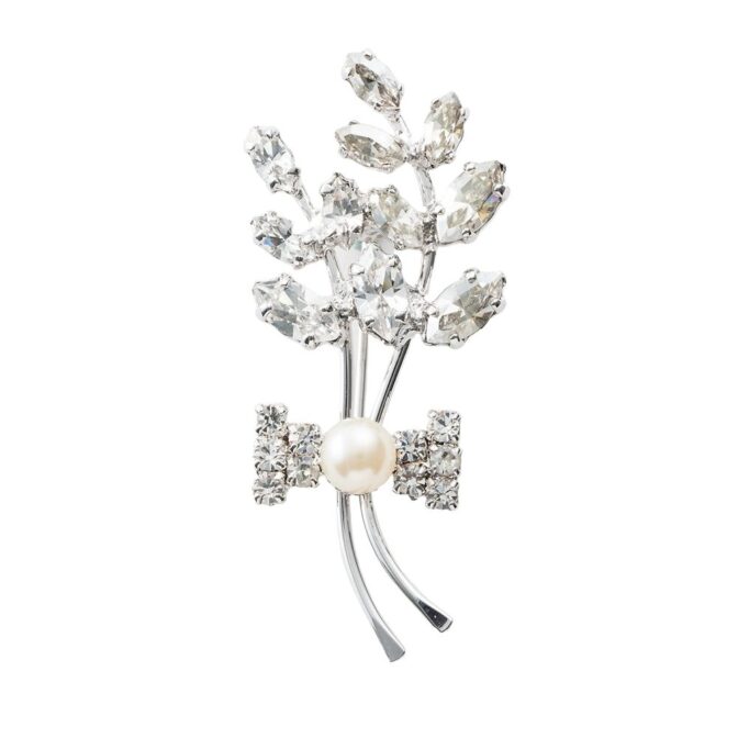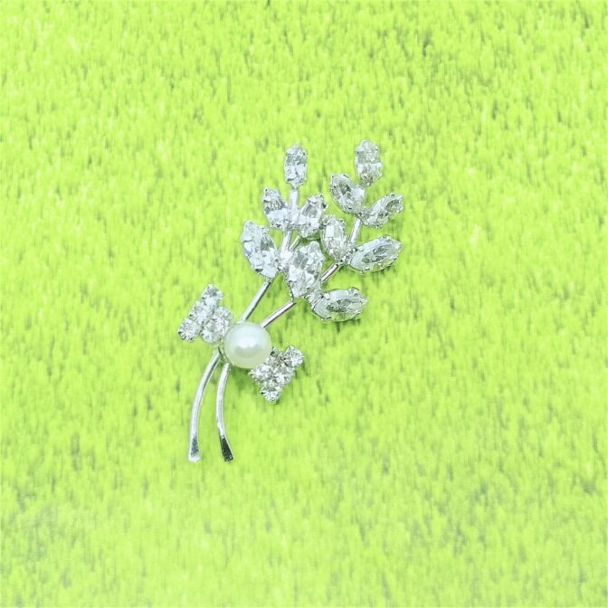 ボタニカル(植物)モチーフのラインストーンブローチ。