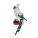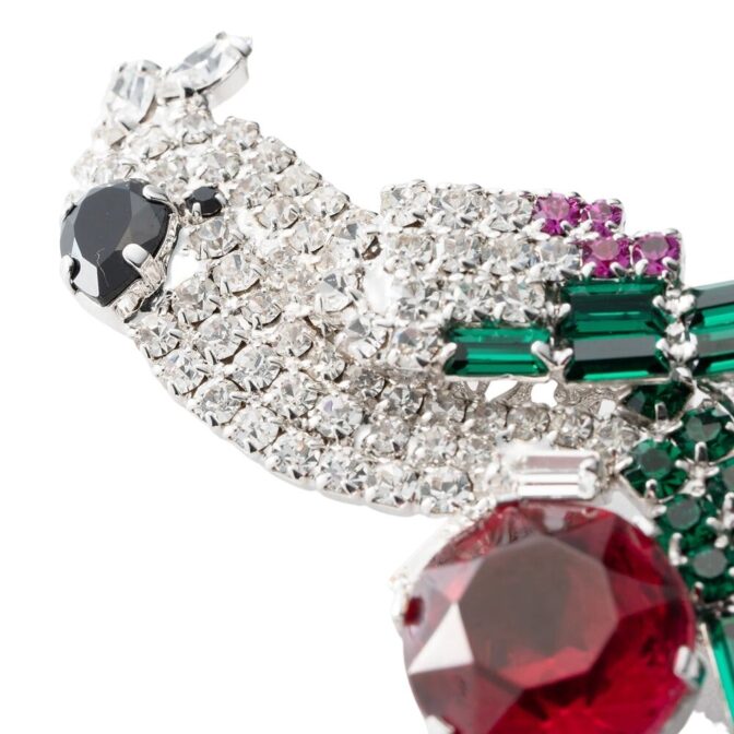 ブローチ ラインストーン おうむ クリア レッド グリーン 149884