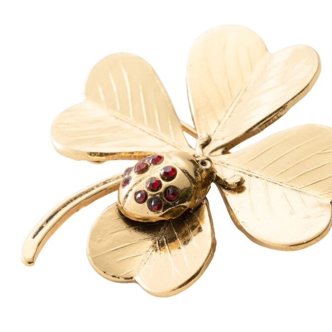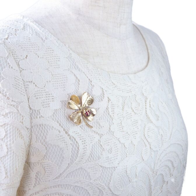 クローバーモチーフのブローチ。